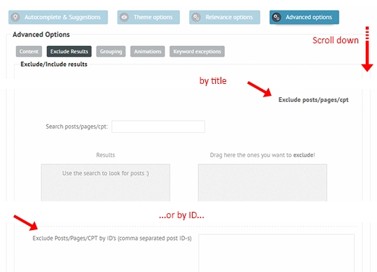 option to exclude results by searching for their title..or if you prefer, enter the IDs to the field below that option.
