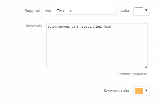 On this panel you can change the pre-fix text color, the keywords color, and enter the keywords comma separated: