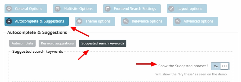 You can enable and change these on the Autocomplete & Suggestions -> Suggested search keywords panel: