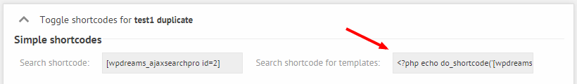 After finding the proper location, you need to place the theme shortcodes there. The difference is, that a theme shortcode is actually a PHP code block. You can find these shortcodes on the same place as the regular ones, on the search settings panel: