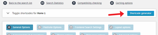 Search instance options -> Shortcode generator button