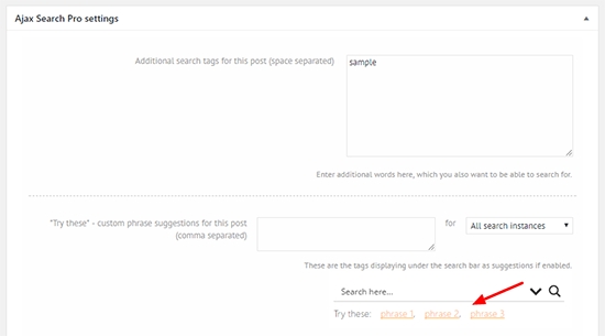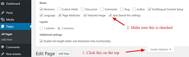 By default the Ajax Search Pro meta box should be visible under the post and page editor screen. This box allows you to:
